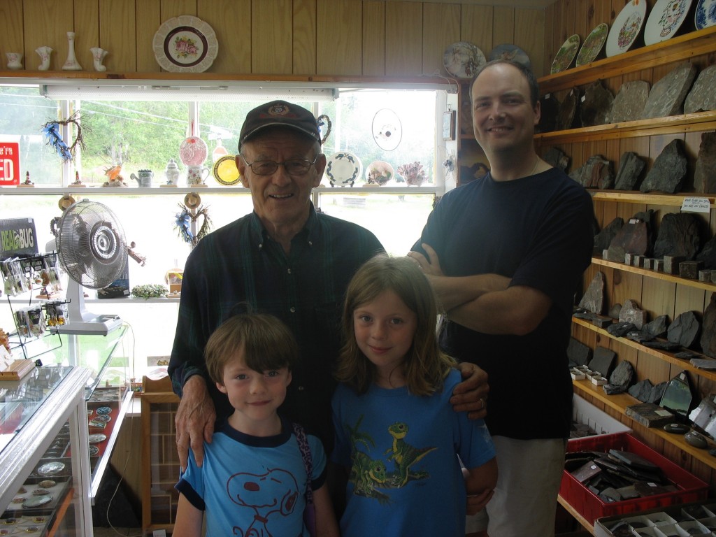 I went to Parrsboro when I was ten (I am the one in the dinosaur t-shirt). I always had a love for fossils. I was really looking forward to going to the Fundy Geological Museum but it was closed due to renovations. The people in the gift shop told me to go to Eldon’s store. When I got there I was amazed by the huge collection of stuff and his accomplishments. I started talking to him and shared my interests in rocks and fossils. He then started to give my some agates and amethyst to take home for free. Eldon was a huge inspiration to me, he told me to collect rocks and fossils because you enjoy it, not because it’s your job, or you feel like you have to.