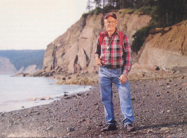 Eldon George, born in Parrsboro on May 10, 1931, passed away surrounded by family and friends on November 29, 2018. Eldon was awarded the Order of Nova Scotia in 2013, in recognition of his contributions to geology and tourism of Nova Scotia. After suffering a traumatic injury to his arm as a young boy, Eldon’s mother encouraged him to paint and collect shells on the shores of the Bay of Fundy. It was then that he discovered a fossil footprint at the age of nine years old, and began his lifelong passion of exploring the geology and fossils of Nova Scotia.